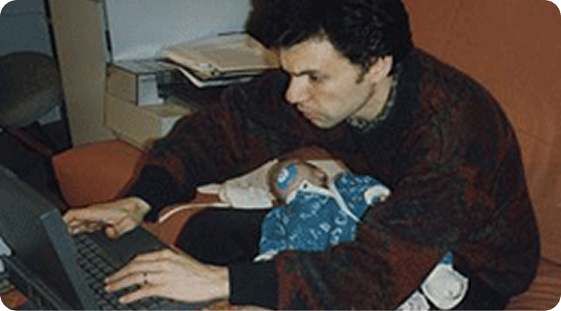 Alexandre et Bénédicte Karpov crée la société dans leur petit appartement. Les 10 m2 de la pièce à vivre servent de salon, bureau et … chambre à coucher la nuit pour le petit Pierre qui vient de naître !