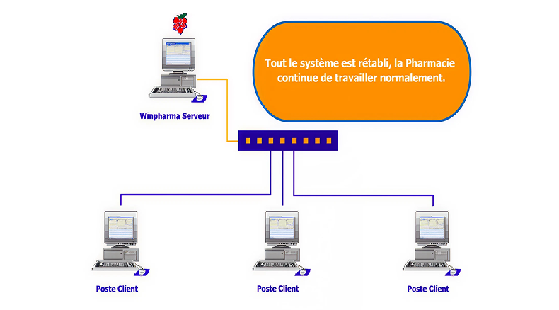 Winpharma invente le NonStop Serveur, un système de sécurité toujours unique sur le marché. Il prend automatiquement le relais sur le serveur auxiliaire en cas de panne, garantissant aux officines une continuité de service inédite.