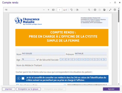 - À partir de Winpharma, enregistrez le CR sur votre disque.